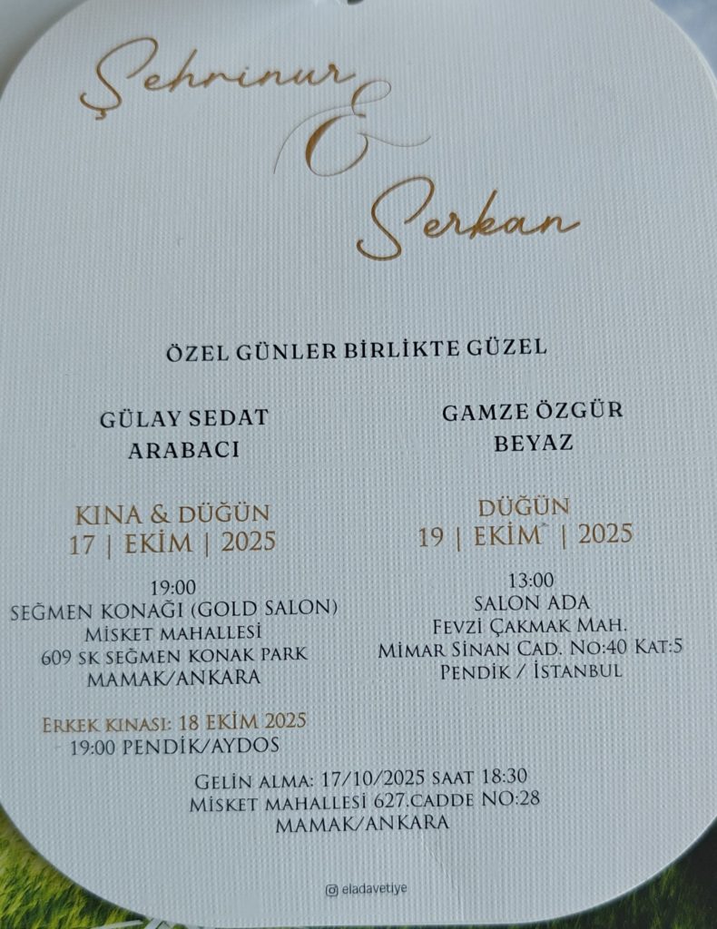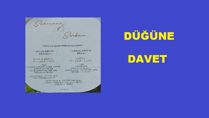 19 Ekim 2025 pazar günü saat 13.00’da Salon Ada Pendik/İstanbul’da düğünü vardır. Bütün dostlarımız davetlidir.