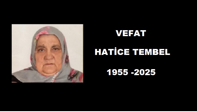 Cemil, Zeynep, Leyla ve Murat’ın annesi. Merhum Mustafa Tembel’in eşi, HATİCE TEMBEL 23 Aralık 2025 salı günü sabah saatlerinde tedavi gördüğü Çankırı devlet hastanesinde 70 yaşında vefat etmiştir. Cenazesi 24 Aralık 2025 Çarşamba günü öğle namazına müteakip köyümüzde toprağa verilecektir. Merhumeye Cenab-ı Allah’tan rahmet, yakınlarına başsağlığı ve sabırlar diliyoruz.